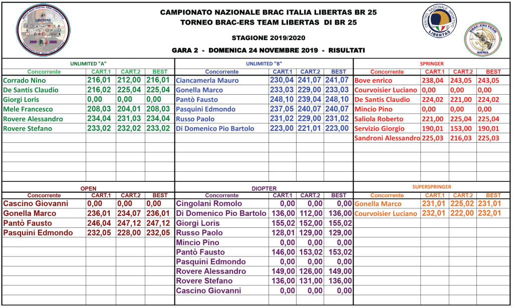 Campionato Naz. BRAC Italia Libertas e Torneo “Gianfranco Cherubini” di BR 25 – GARA 2 – 24 Novembre 2019