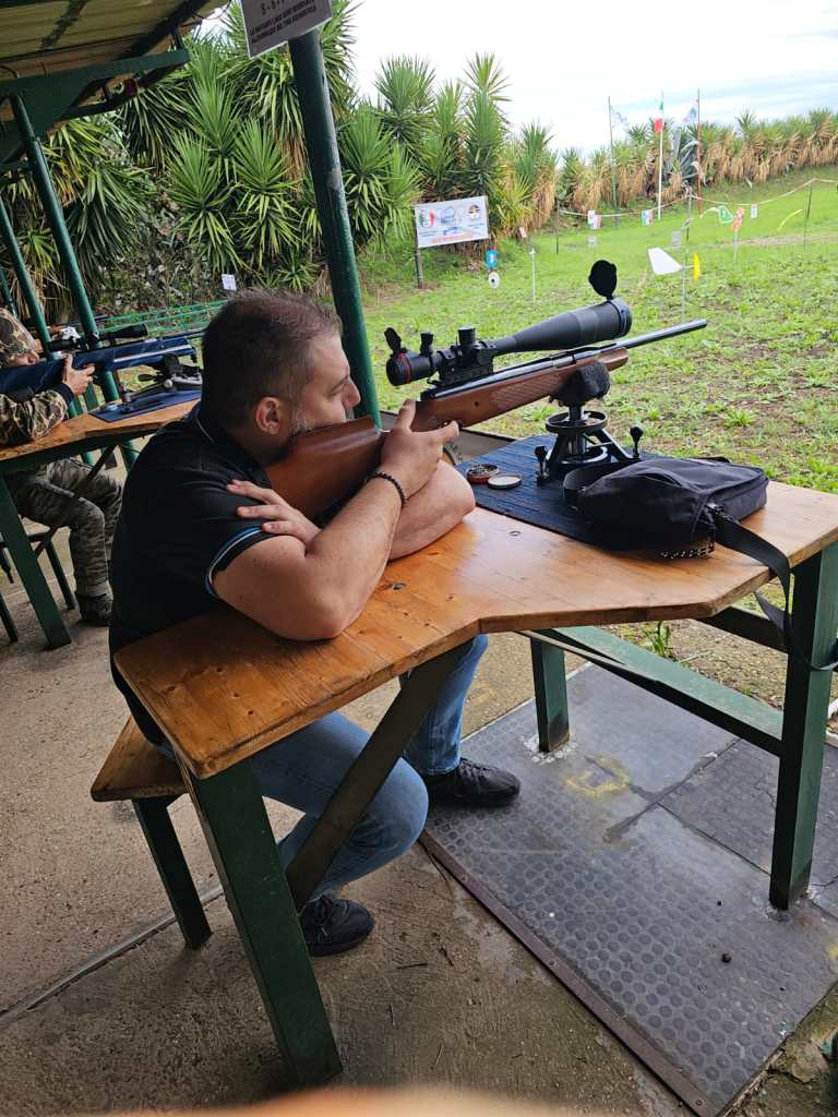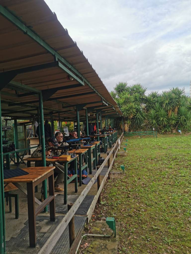 Siamo tutti in po’ preoccupati per il cielo grigio che non fa presagire niente di buono. Il campo è già stato in gran parte allestito, manca soltanto di piazzare i bersagli di gara per il primo degli otto turni di tiro previsti. Una lauta colazione nel baretto della “Club House”, poi il primo turno di concorrenti comincia a prendere posto ai tavoli di tiro.