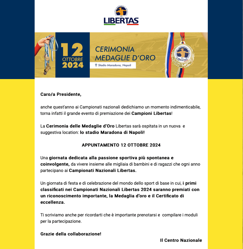 Mi preme segnalare che il Centro Provinciale di Libertas Roma…….