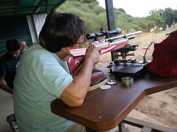 Si susseguono nell’ordine le successive categorie che prevedono armi tutte dotate di ottica, prima tra queste la Super Springer. I problemi causati dalla precamera spariscono. L’ottica, infatti, consente di visualizzare chiaramente il bersaglio mettendolo bene a fuoco. Anche in questo caso, tuttavia, sussiste un impedimento.  La presenza delle feritoie limita lo spazio visivo verso le linee e risulta praticamente impossibile chiedere …”aiuto” alle wind-flags ed ai bilancieri, per valutare gli effetti del vento sulla traiettoria del tiro. Poco male però, per tutta la durata della competizione, il nostro poco gradito ospite “Eolo” si è presentato si, come d’obbligo, ma in veste di lievissima brezza ed i concorrenti, concentrati sui propri bersagli, se la sono cavata benissimo anche senza ausili esterni. A mezza gara, Carlo ci ha rifocillato con i suoi panini pieni di ogni grazia di dio. Particolare menzione va al suo eccezionale “lampredotto” preparato espresso al suo arrivo.
