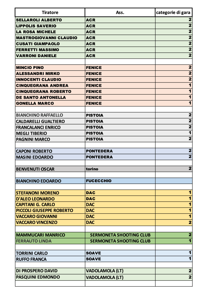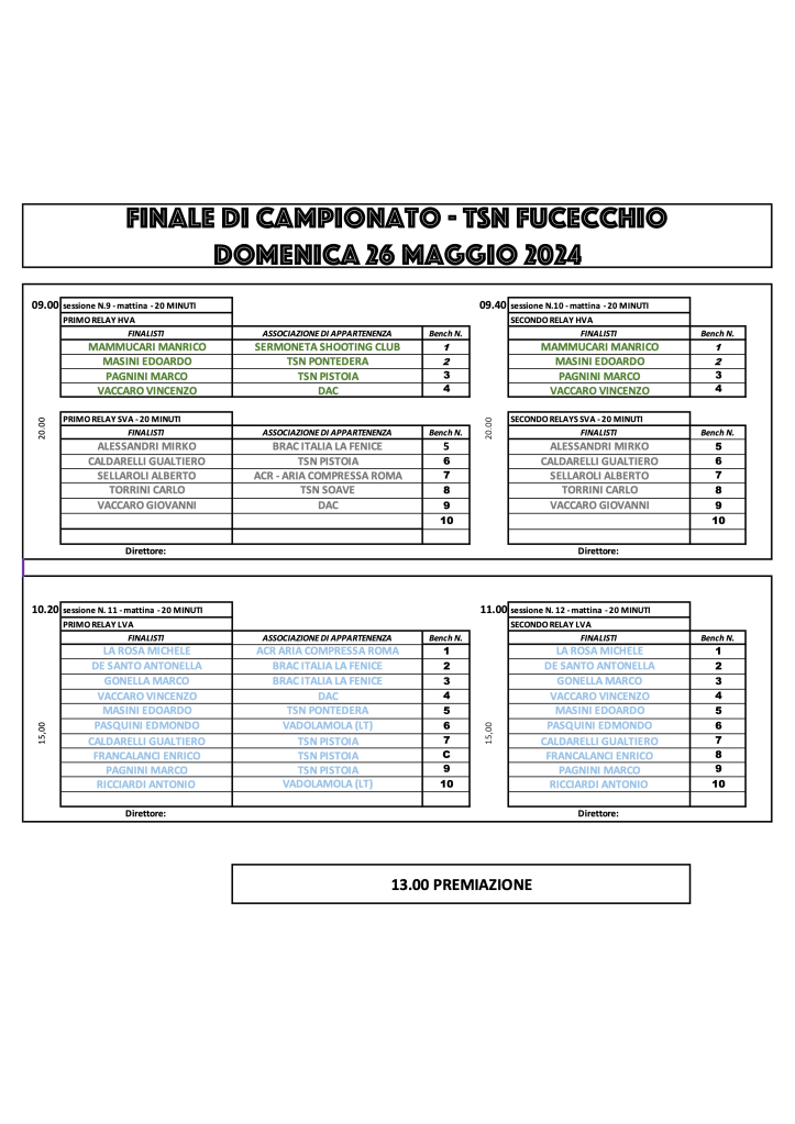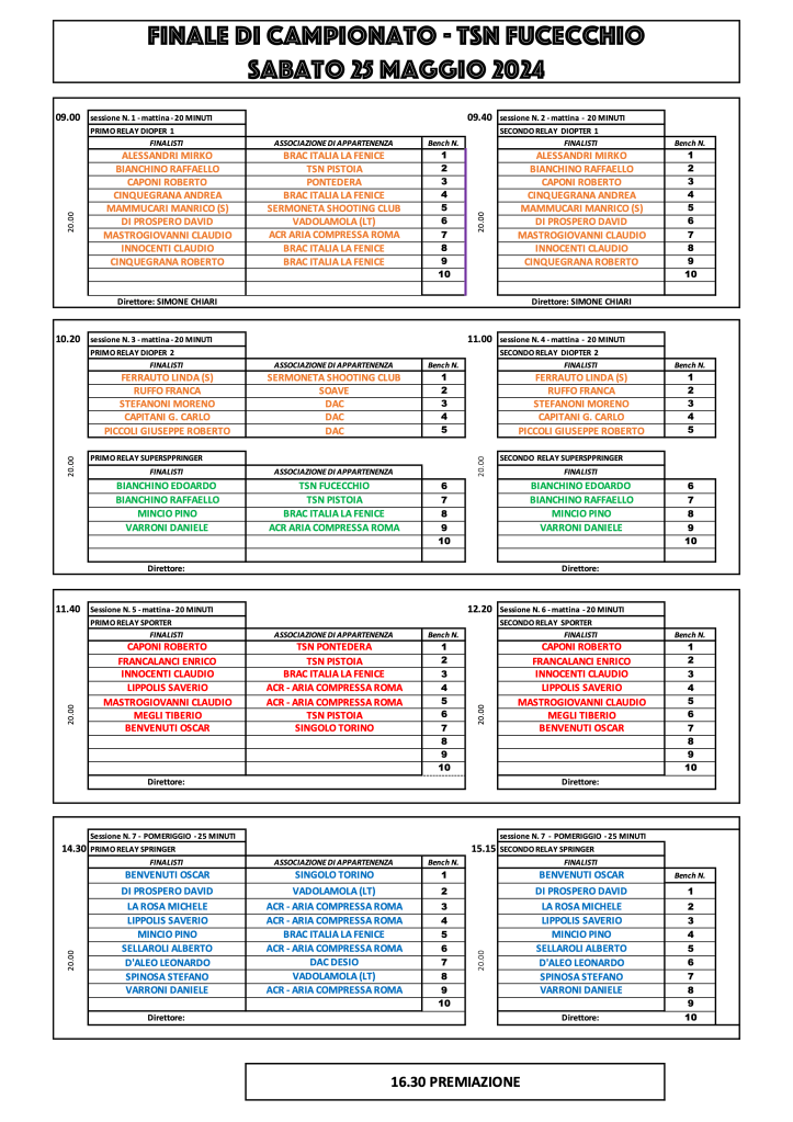 TSN FUCECCHIO – FINALE DI CAMPIONATO -GRIGLIE DI TIRO 25/26 MAGGIO