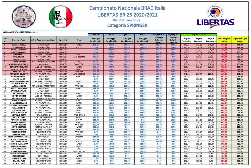 GRADUATORIE DEFINITIVE DI ACCESSO ALLA FINALE – GARA 6 – Aprile/Maggio 2021 Di seguito le graduatorie definitive di accesso alla finale di Campionato – GARA 6. RISULTATI SPORTER – GARA 6Download RISULTATI UNLIM. “A” (SVA) GARA 6Download RISULTATI SPRINGER GARA 6Download RISULTATI S.SPRINGER GARA 6Download RISULTATI UNLIM. “B” (LVA) GARA 6Download RISULTATI DIOPTER GARA 6Download RISULTATI OPEN (HVA) GARA 6Download Condividi: Condividi su X (Si apre in una nuova finestra) X Condividi su Facebook (Si apre in una nuova finestra) Facebook Mi piace Caricamento...