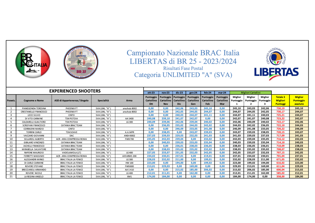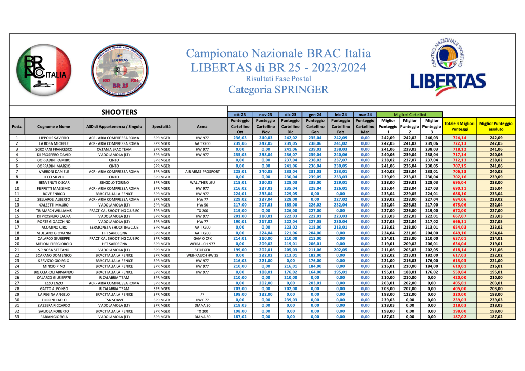 GARA 5 – FEBBRAIO 2024 – GRADUATORIE PROVVISORIE Di seguito le graduatorie al termine di GARA 5: sporter-gara-5Download superspringer-gara-5-Download sva-gara-5Download lva-gara-5Download springer-gara-5Download diopter-gara-5Download hva-gara-5Download Condividi: Condividi su X (Si apre in una nuova finestra) X Condividi su Facebook (Si apre in una nuova finestra) Facebook Mi piace Caricamento...
