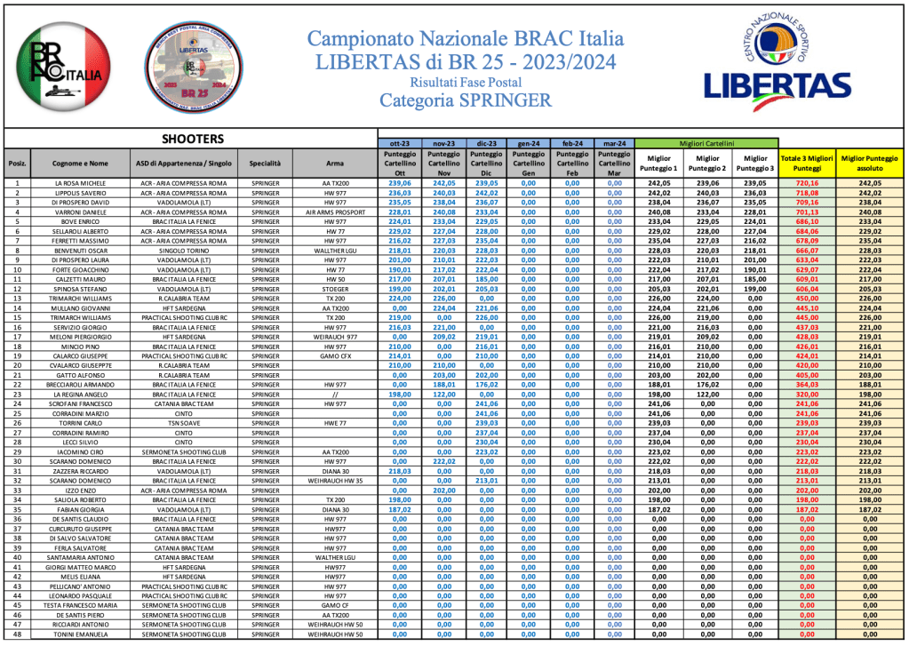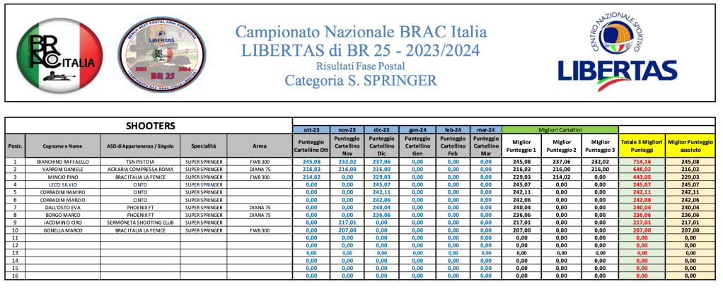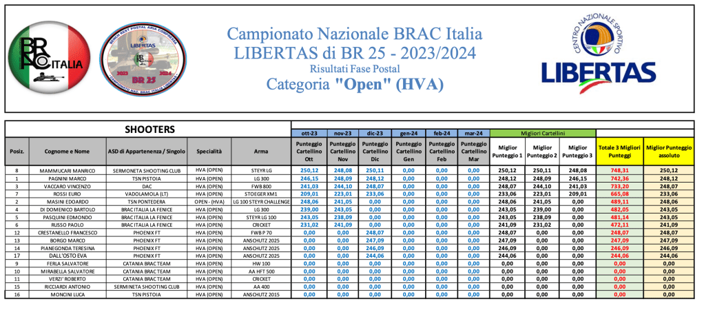 Di seguito le graduatorie provvisorie al termine di GARA 3.