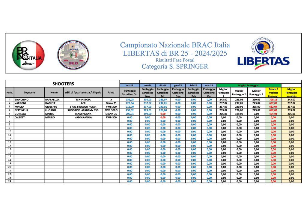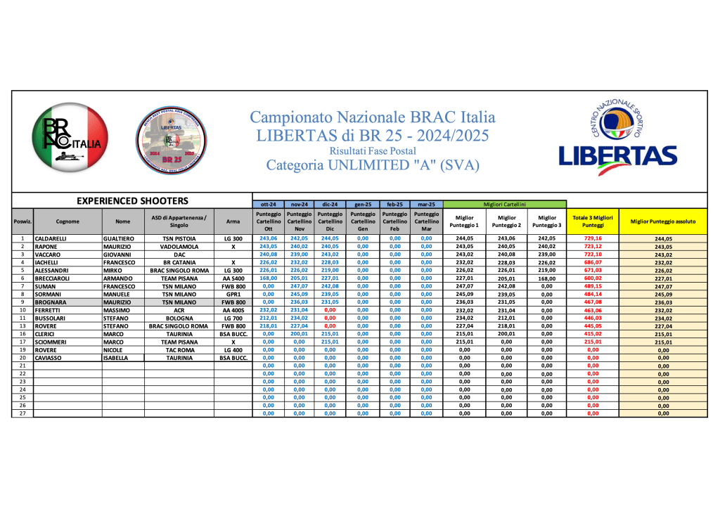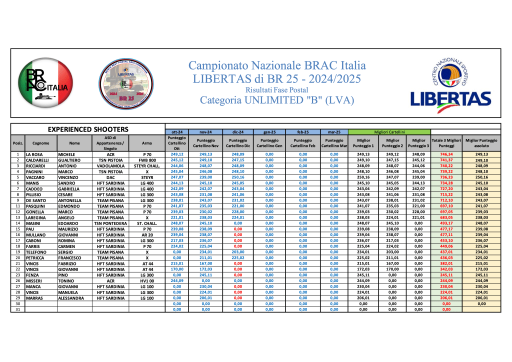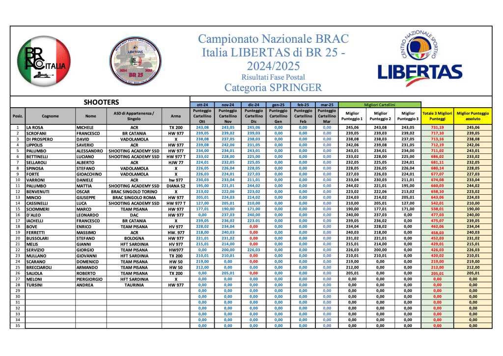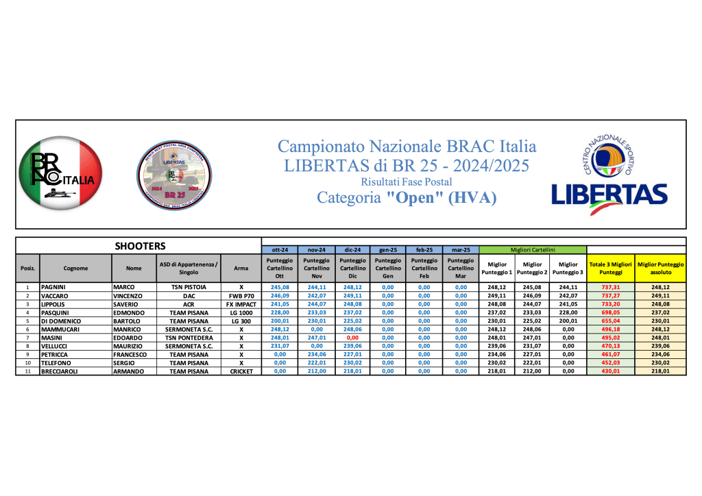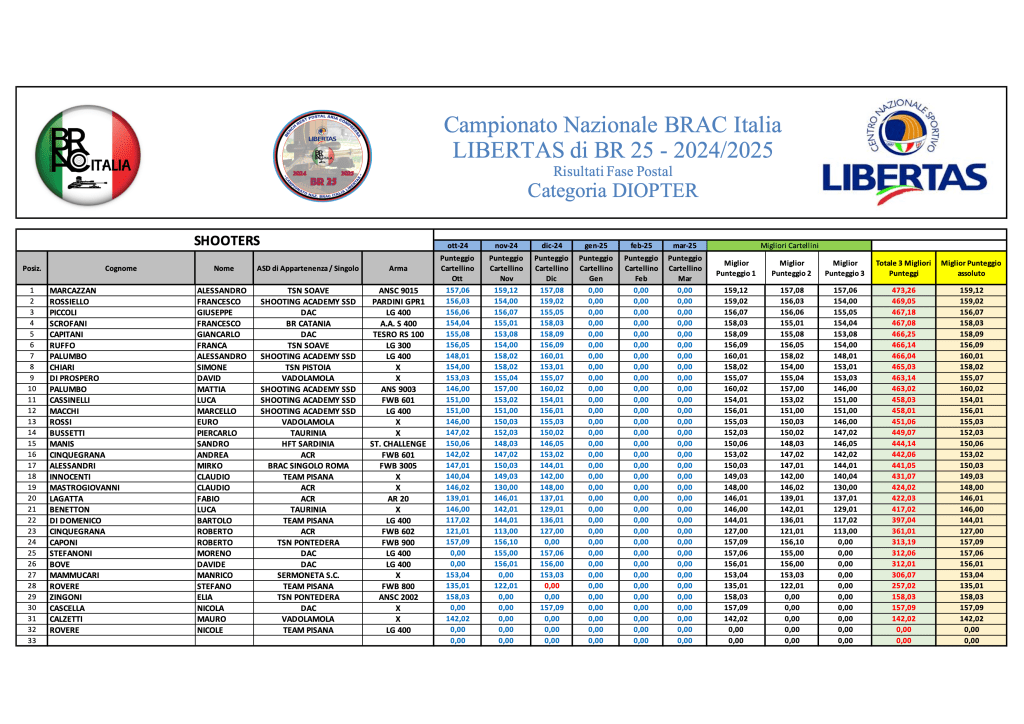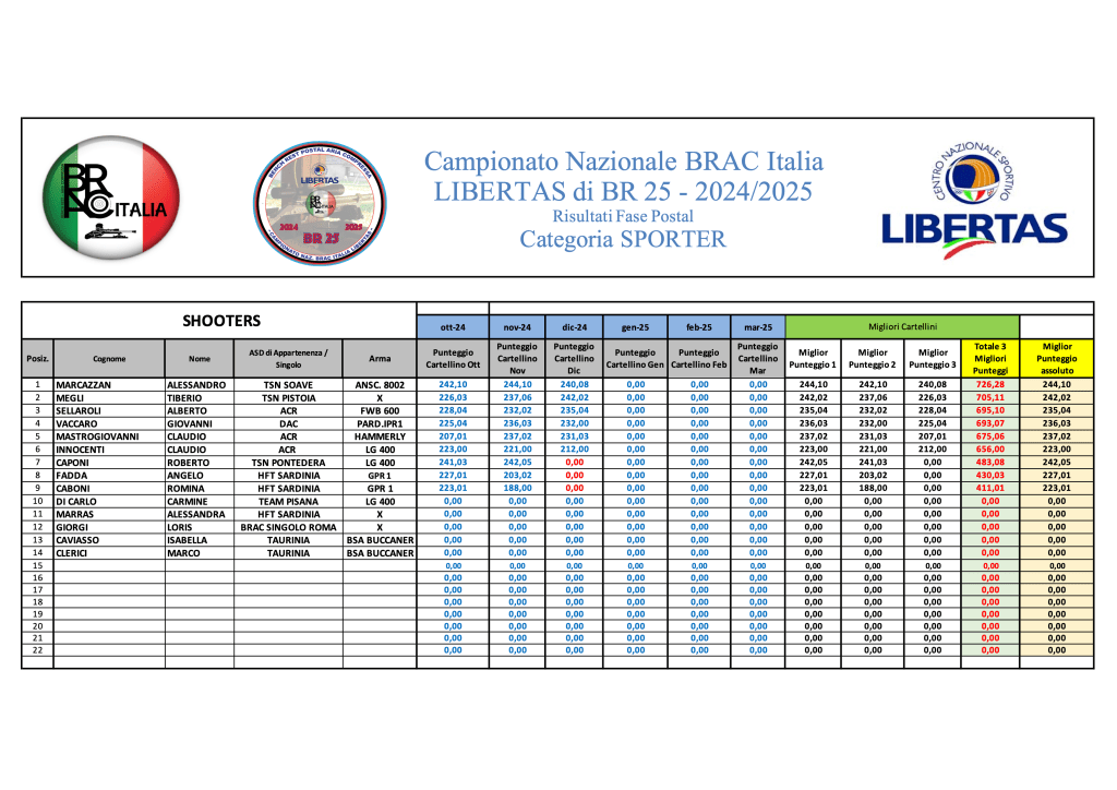 Di seguito, le graduatorie provvisorie a conclusione della terza sessione di tiro di Campionato: