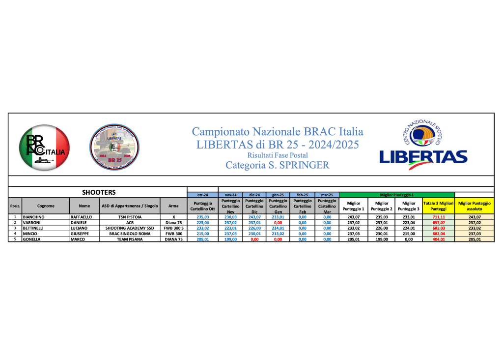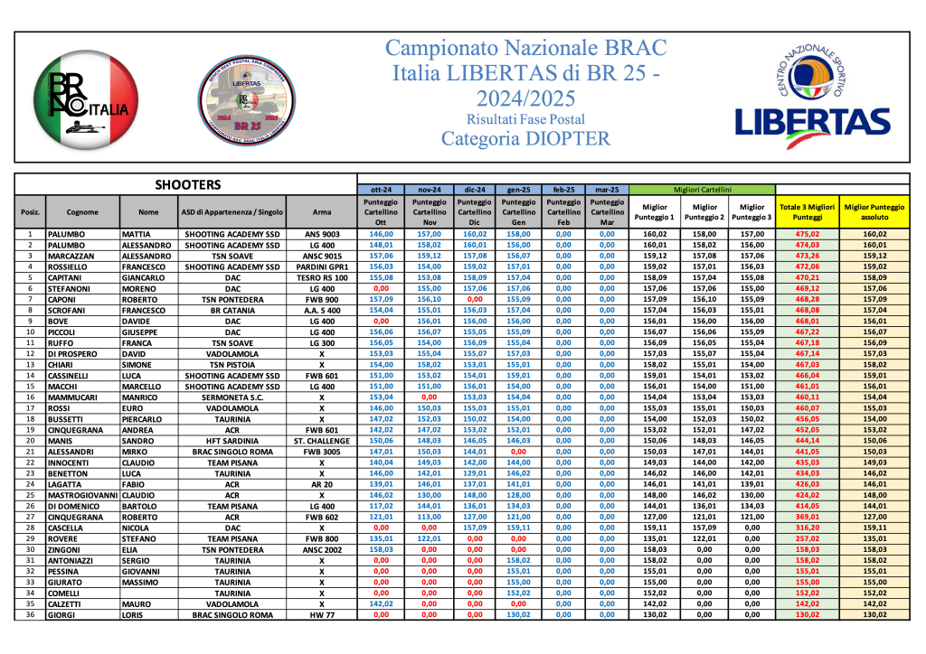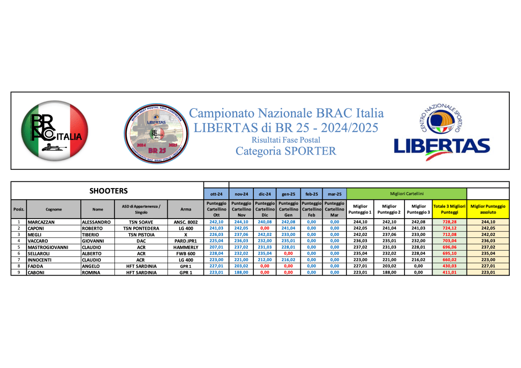 Di seguito le graduatorie provvisorie di campionato al termine di GARA 4