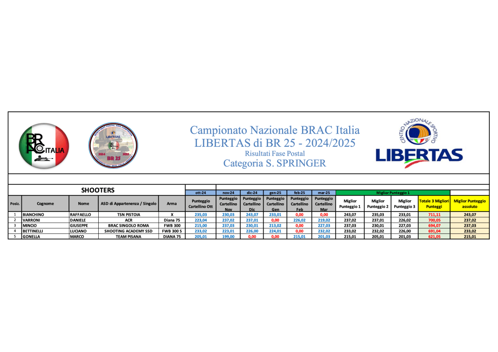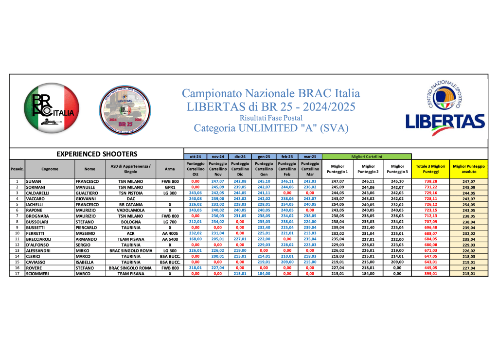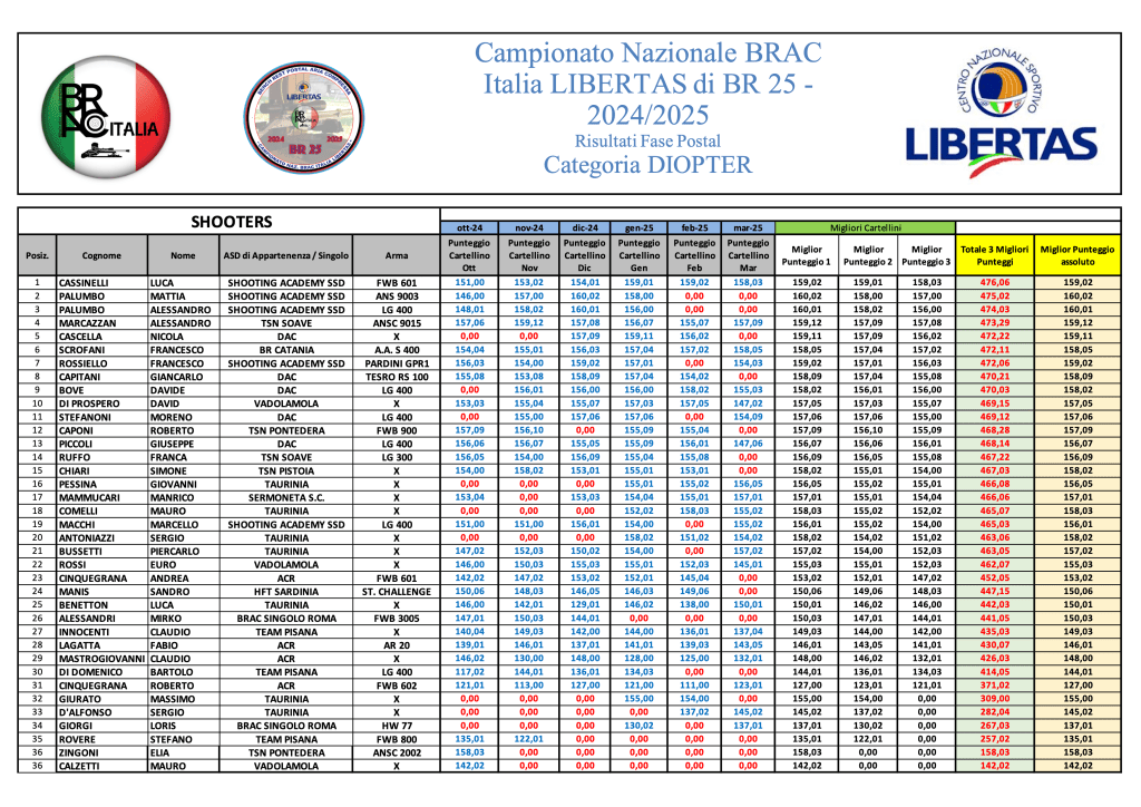 Di seguito le graduatorie definitive che concludono la “Fase Postal” di Campionato e determinano l’accesso alla Finale di Fucecchio che si terrà prossimamente nel corso del week end 24/25 Maggio 2025.