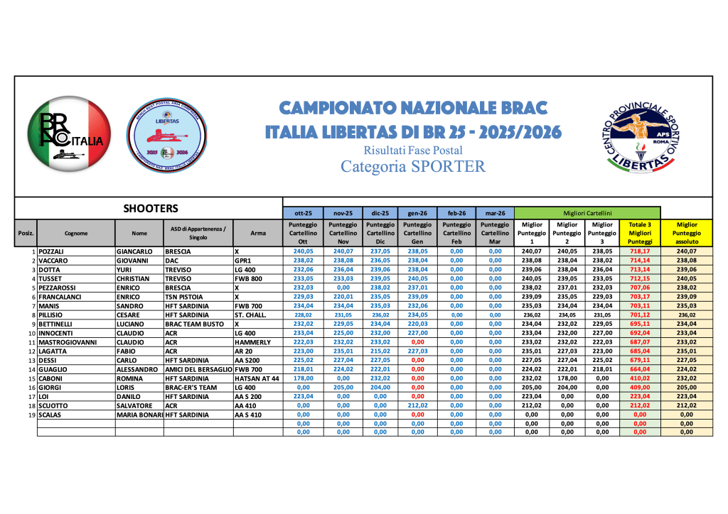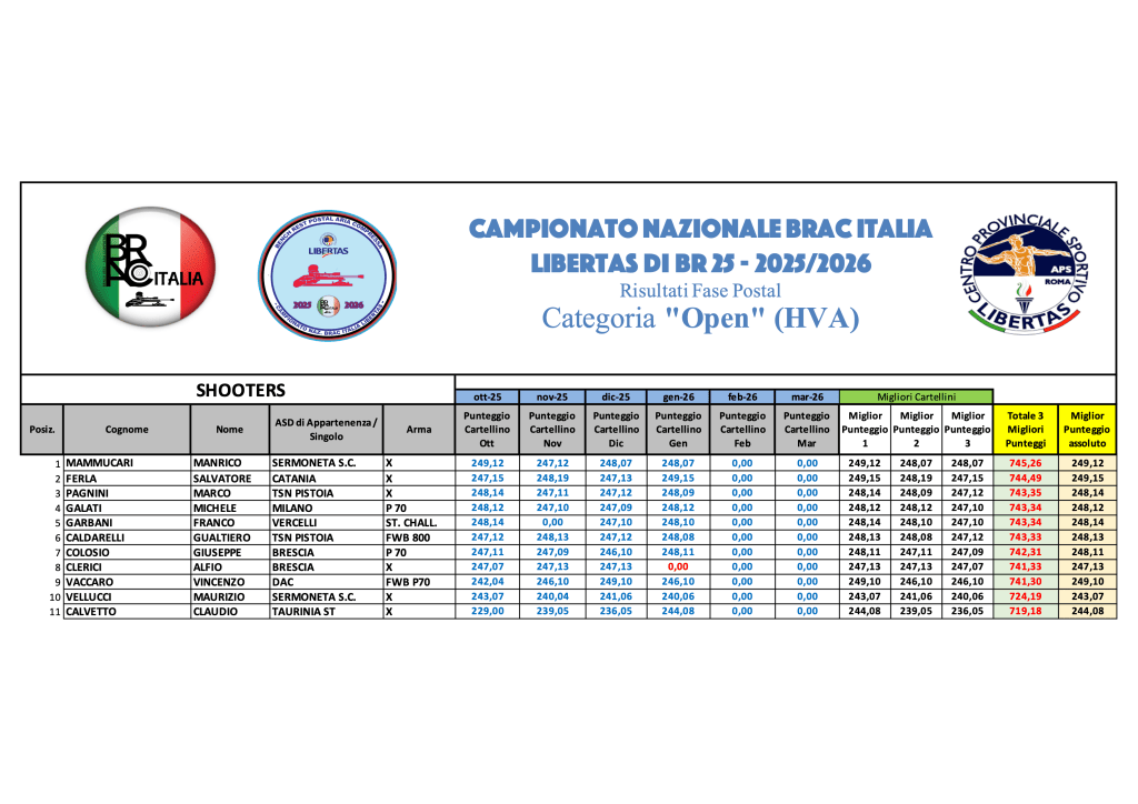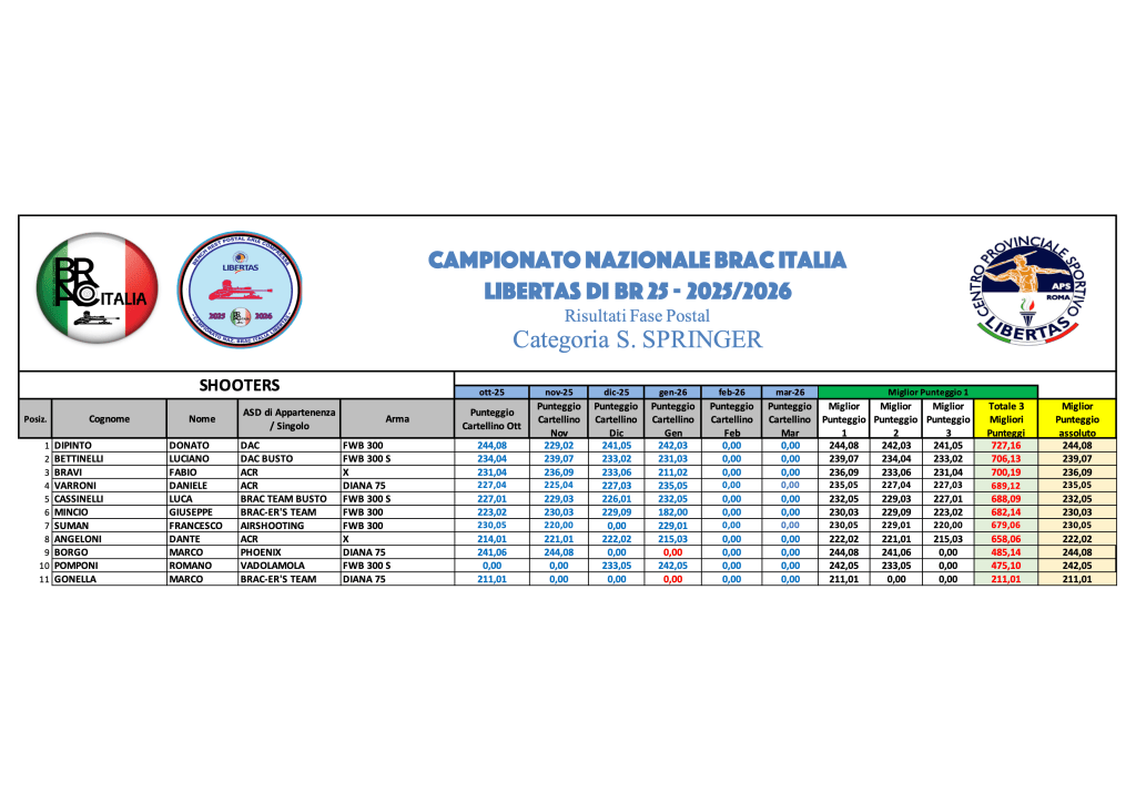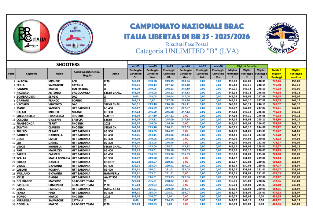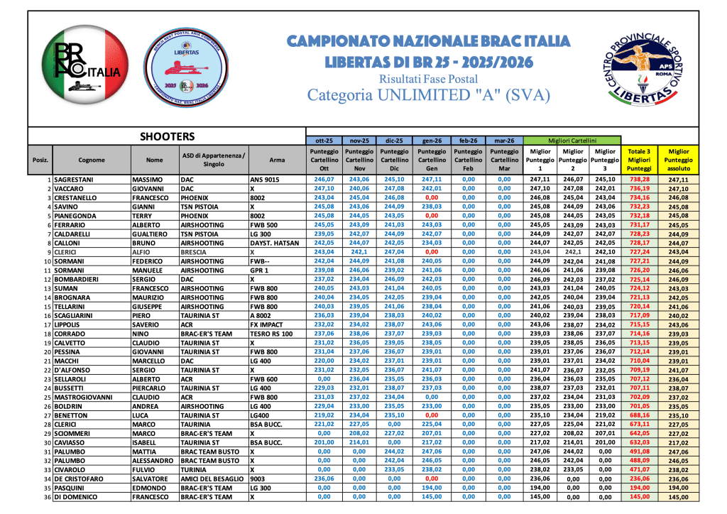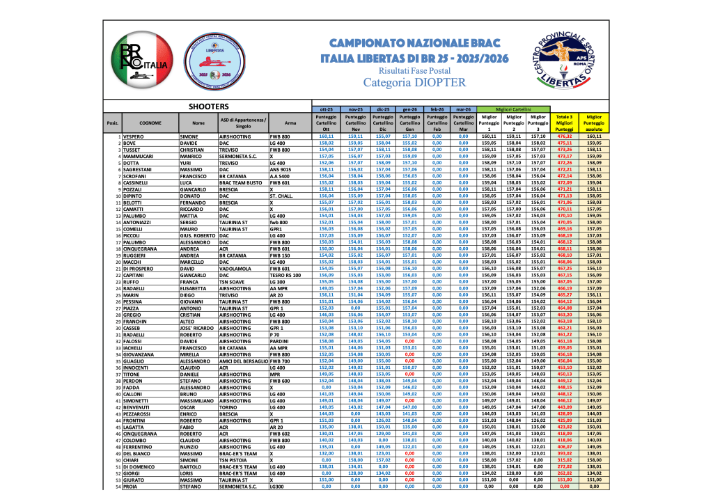 Graduatorie provvisorie di Campionato GENNAIO 2026 – GARA 4 Di seguito, le graduatorie provvisorie di Campionato al termine di GARA 4, in formato immagine e .pdf scaricabile. Sporter GARA 4Download SuperSpringer GARA 4Download SVA GARA 4Download LVA GARA 4Download Springer GARA 4Download Diopter GARA 4Download HVA GARA 4Download Condividi: Condividi su X (Si apre in una nuova finestra) X Condividi su Facebook (Si apre in una nuova finestra) Facebook Mi piace Caricamento...